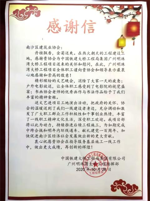 (3)组建行业工会联合会,服务行业从业人员。协会组建第三届广州市南沙区建筑工地工会联合会,充分运用建筑工地工会联合会平台,组织会员单位开展南沙区在建项目“送清凉、送温暖、安全文明施工宣讲、义诊”等一系列普惠活动。疫情期间更是响应南沙区政府复工复产的号召,积极做好疫情防控工作。