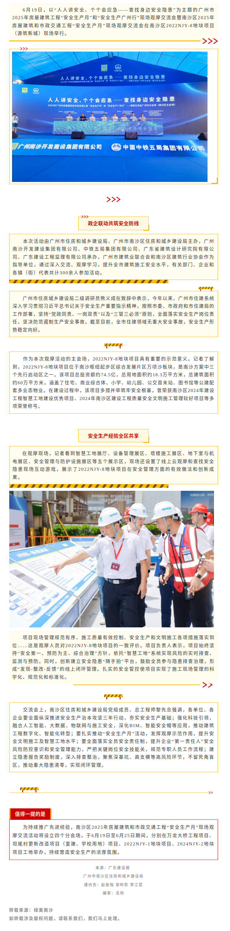 南沙区“安全生产月”观摩交流活动在2022NJY-8地块项目成功举办