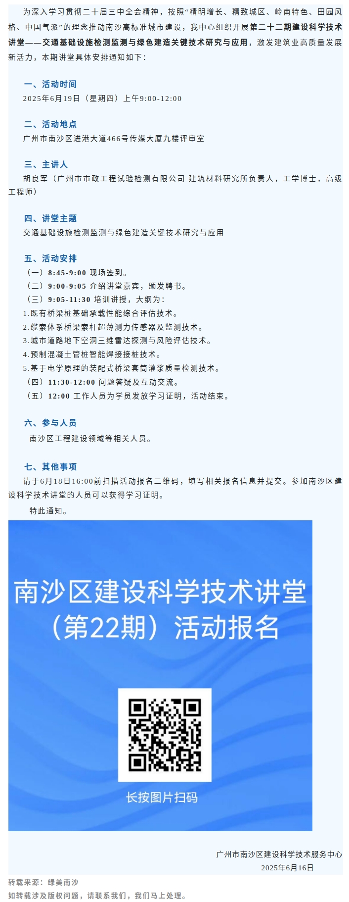 交通基础设施检测监测与绿色建造关键技术——建设科学技术讲堂报名开启啦!