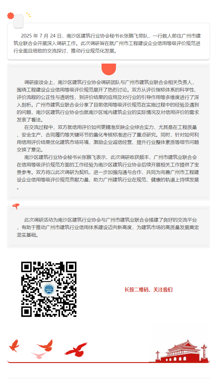 南沙区建筑行业协会赴广州市建筑业联合会开展调研工作