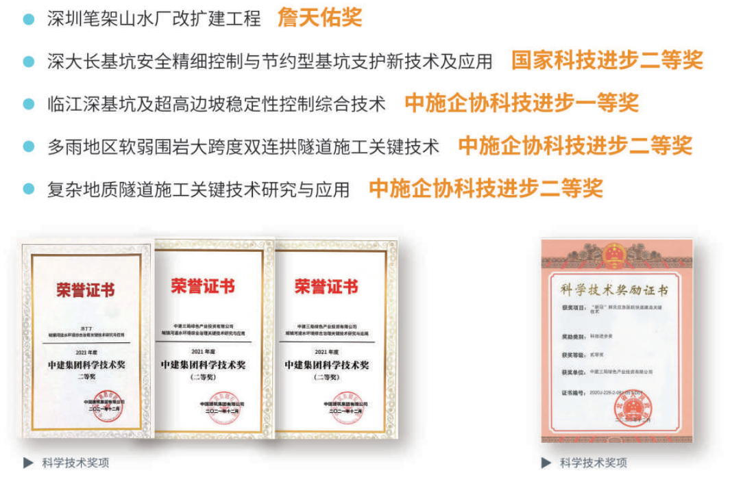 我们拥有水利水电行业相关专利86项,工法67项,科技进步奖7项;拥有抽水蓄能电站施工相关专利157项,工法145项、标准16项、科技进步奖10项。