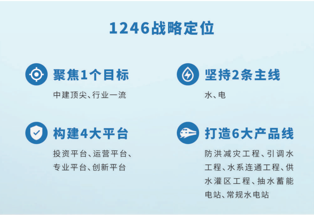 中建三局水利水电开发有限公司成立于2022年6月。公司围绕“全国最具影响力的水利水电综合服务商”的发展愿景,明确了1246的战略定位:聚焦1个目标(中建顶尖、行业一流),坚持2条主线(水、电),构建4大平台(投资平台、运营平台、专业平台、创新平台),打造“4+2”产品线(防洪减灾工程、引调水工程、水系连通工程、供水灌区工程、抽水蓄能电站、常规水电站)。依托三局资源禀赋,围绕七大流域委核心区,实现全国化布局,不断提升综合竞争力,构建水利水电全产业链生态竞争力。