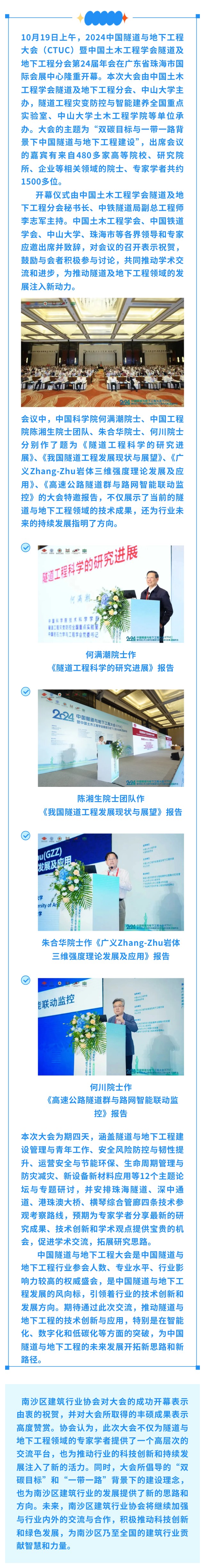南沙区建筑行业协会祝贺2024中国隧道与地下工程大会成功开幕